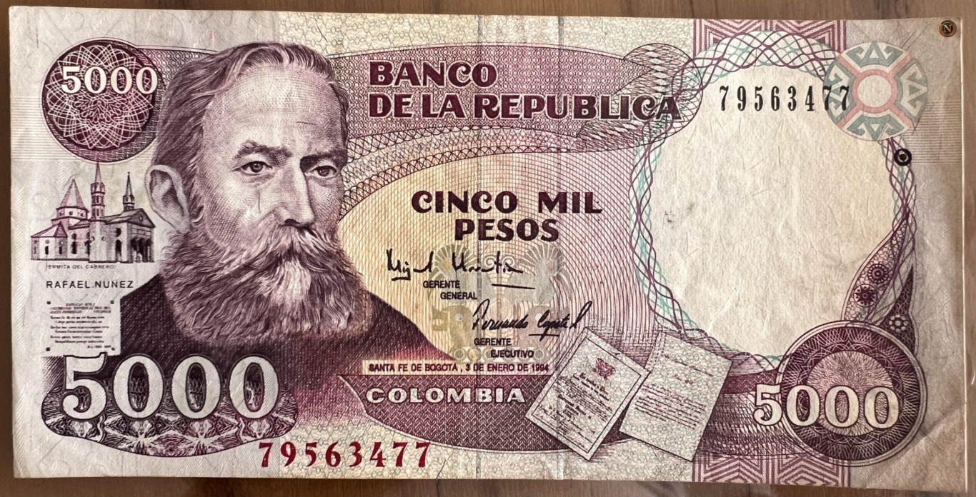 Rafael Núñez, el «poeta» del himno nacional, también fue el propiciador de la Constitución de 1886, como lo muestra el billete de $5000 pesos, hoy de colección.