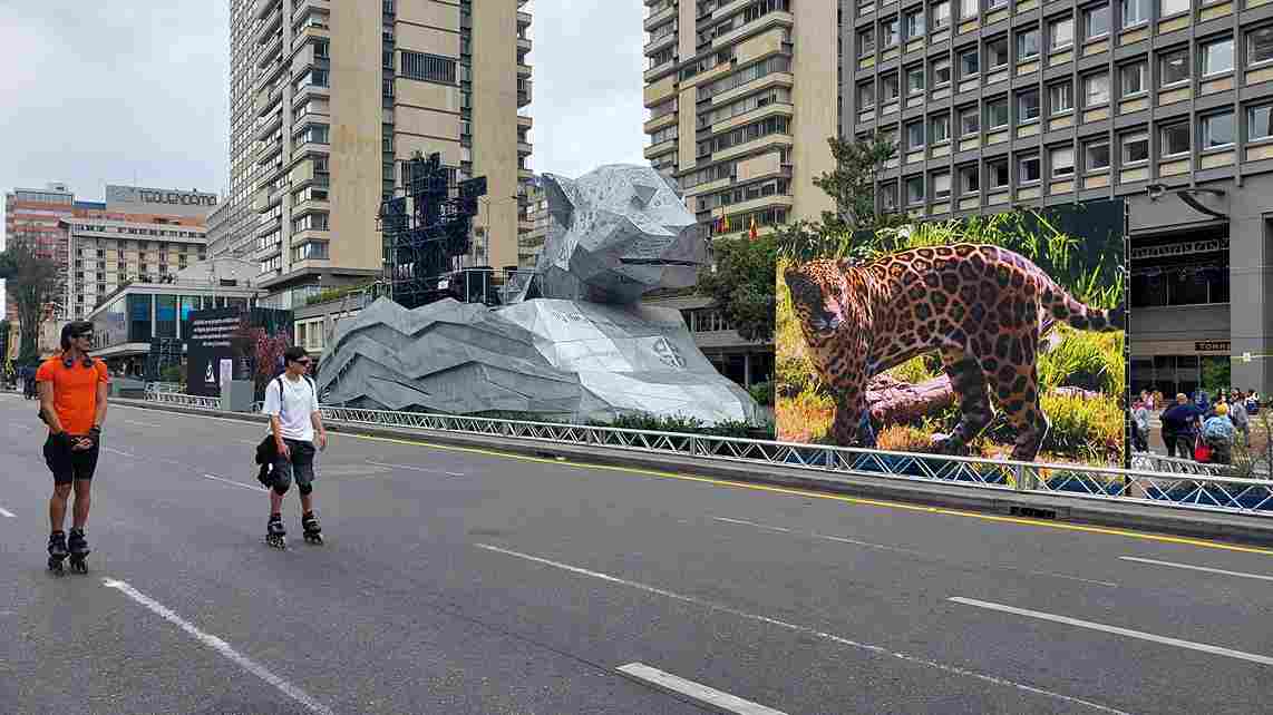NOTA: Olvidé la espectacular escultura-tarima «La Jaguara», realizada en láminas de acero troqueladas, emplazada frente al Museo Nacional, en pleno Centro internacional y sobre la cual se han realizado algunos eventos y conciertos el el marco de la Bienal de Arte BOG25.