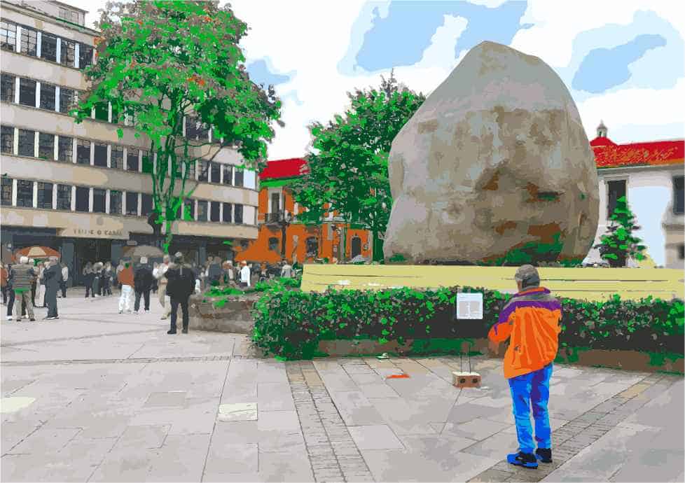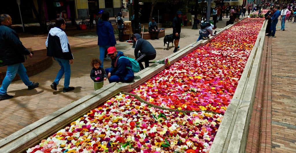 El espacio publico propone escenificaciones creativas como la intervención en la plaza de Lourdes del argentino Leandro Erlich “Arrancado de raíz” (‘la casa en el aire’), que muestra los efectos del desplazamiento y el desarraigo; o la bella acción colectiva -intervención de los espejos de agua con flores- en el eje ambiental, patrocinada por Asocolflores, sobre el cuidado de las fuentes de agua y su fragilidad -que solo duró 2 días, dada su naturaleza-; o la gigantesca y ‘amorosa’ roca del colombiano Iván Argote en la plazoleta del Rosario, sitio que antes ocupaba G. Jiménez de Quezada, llamada “Dándole peso a unos besos”, que nos propone querernos como somos.